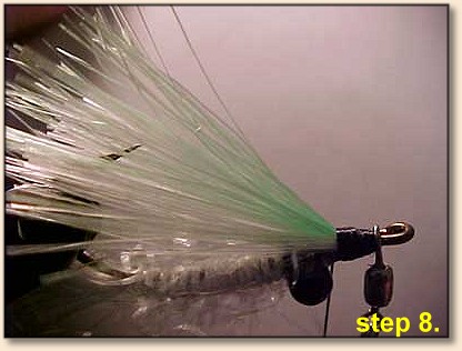 Step 8: Tie in a topper for the fly. I used Chartreuse