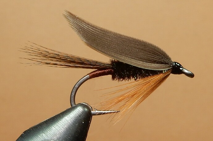 Tip - Brown floss Tail - Brown mallard Body - Peacock herl Hackle - Brown Wing - Slate duck or goose quill segments