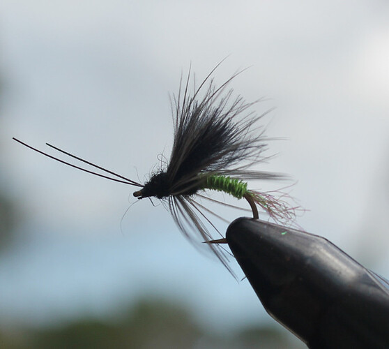 - Antennae: One pair of black hackle stems