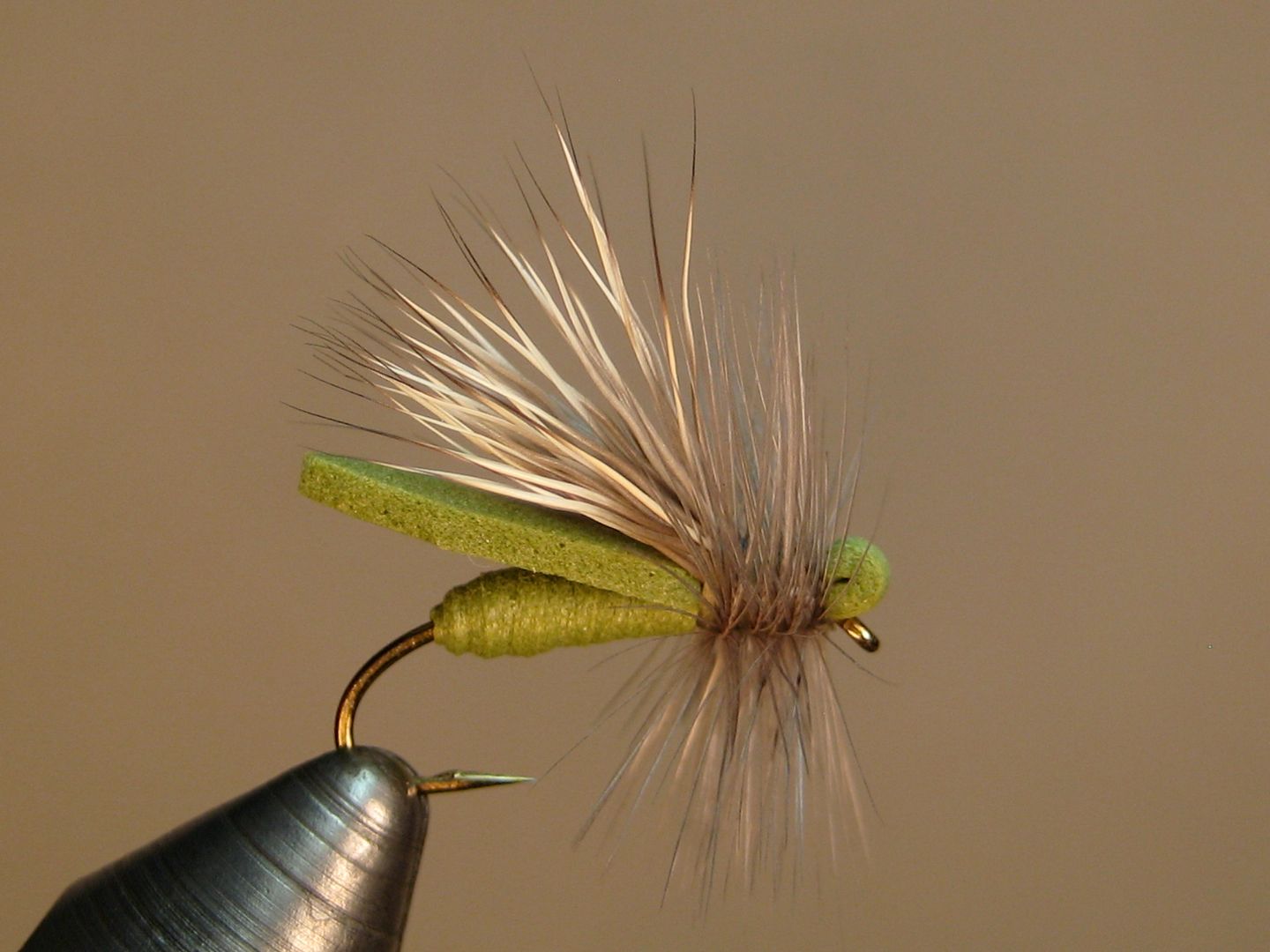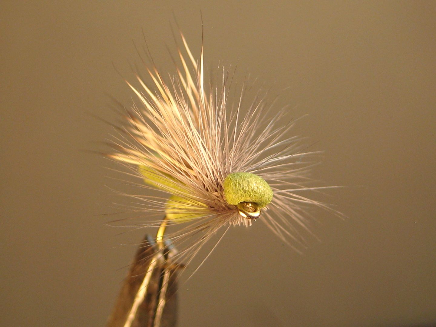 As in, it’ll float like one. A variation on the Doculator, this one’s tied for the Mother’s Day Caddis; change colors/size to suit your needs (anything smaller than a #14 and you may want to use .5mm foam)