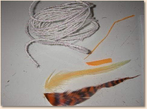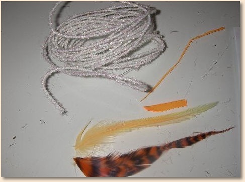 PHASE 1- 1st find the raw materials as shown such as hook size, feathers,
