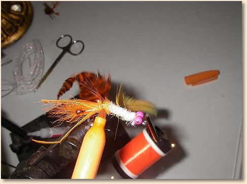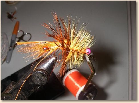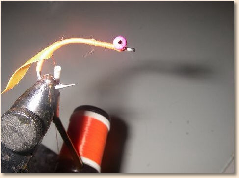floss…while doing so secure the beadchain eyes and tye in the goose biot