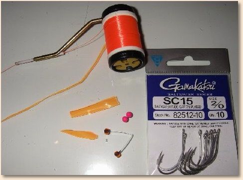 PHASE 2- Secure the hook in vise and wrap the hook with the flourescent orange
