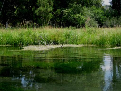 In the first image above a good trout was holding in the pocket formed by the weeds and feeding right on the edge of the floating weeds. The fly had to drift into the pocket and then hesitate right at the edge of the weeds just under the limbs that are sticking out of the water. Once hooked the fish wanted to dive back under the weeds into the tangle of sticks just below the surface, and this offered an interesting challenge.
