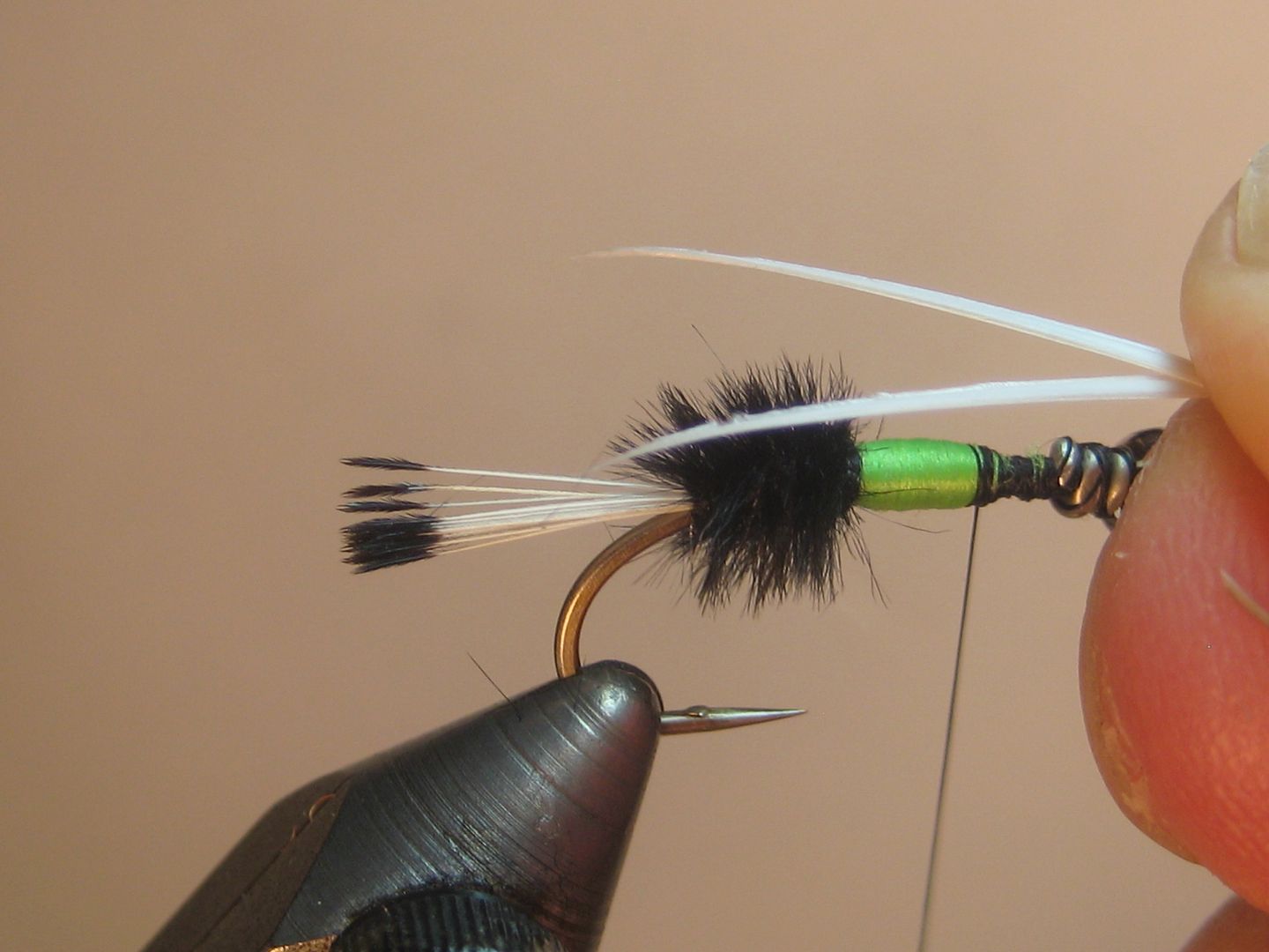 trim out center of AP tippet; fold, measure (gap width past bend), tie in