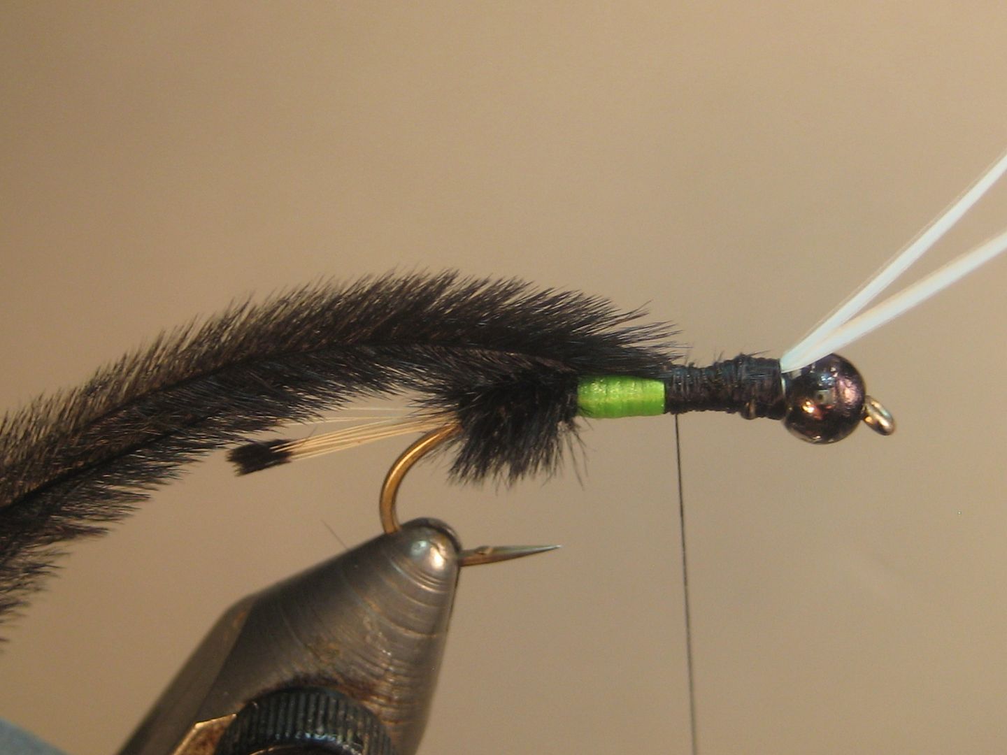 tie in some ostrich, twist with thread, wrap rear 1/3; tie off/trim