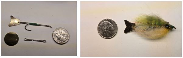 I like to use “non-traditional” materials to get new/different looks to some of my favorite patterns. I use 3/4” flat sequins for this pattern. I cut the sequin to the shape of a fish’s tail, then I attach it to the hook shank with a 30mm long Gamechanger link. I cut off the closed-loop end of the link and tie it to the hook shank, leaving enough room to give the tail plenty of action. Then, I slip the tail on the open end of the link. This allows me to replace or change the tail in just a few seconds if I want to. Sometimes a little bit of extra action or a bit of flash makes the difference between a strike or a pass. This is a productive pattern for me here in Central Florida, but I suspect that gamefish across all areas would also find it enticing. I call this pattern a Flash Tail for obvious reasons and thought I’d share one of my personal favorite patterns.