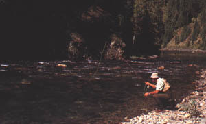All you need to fish steelhead here is a pair of waders, seven or eight weight rod, floating line