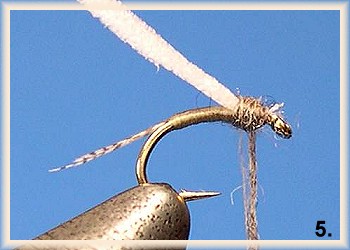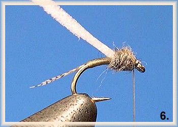 - Using Adams gray superfine dubbing, dub a bulky thorax.