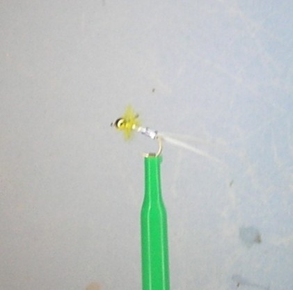 usually on scud hook, biot tails, liver mylar body, yellow ostrich herl collar, bead head