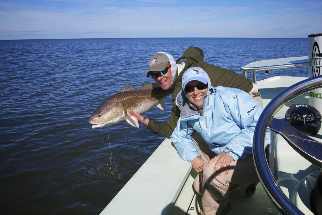 The winter is winding down and the Gulf Coast temps are steadily rising. The warming waters of the Biloxi Marsh in southeastern Louisiana represent the end of the winter season of Fly Fishing to Monster Redfish. These Monster’s entertain us during the months of October through the end of March when the Marsh waters range in temps of 55-68 degrees. We had a great season this winter despite quite a bit of cloudy weather which is certainly not normal. Our angler’s averaged 2 to 3 fish over 20#s daily with several breaking 35#s even though the visibility less than desirable. Looking forward to next season but first with the warming water temps brings everyone’s favorite flats fish the Tarpon and Salted Flats Fly Fishing will be in Apalachicola, Florida heading off there migration till mid August. Come loin us for and unforgettable day on the Flat’s of Florida’s Forgotten Coast. Here are a few pics from the season. Enjoy!