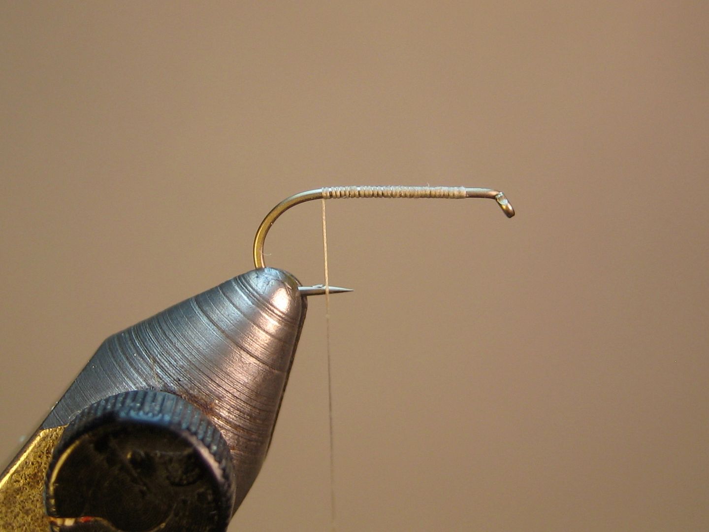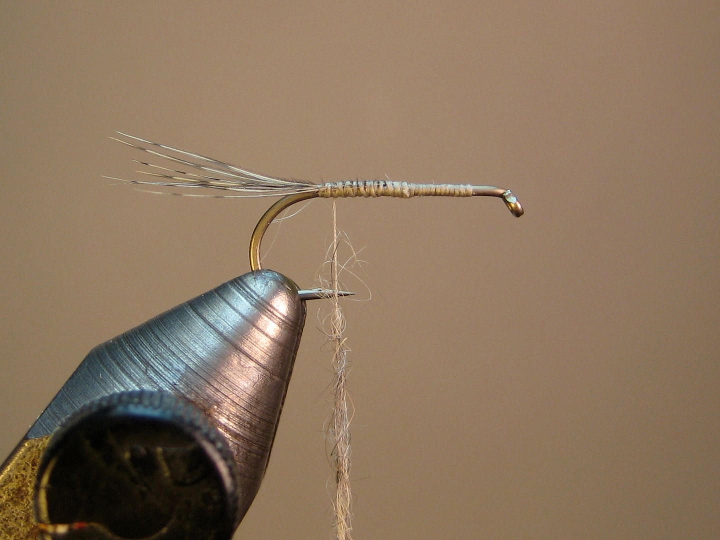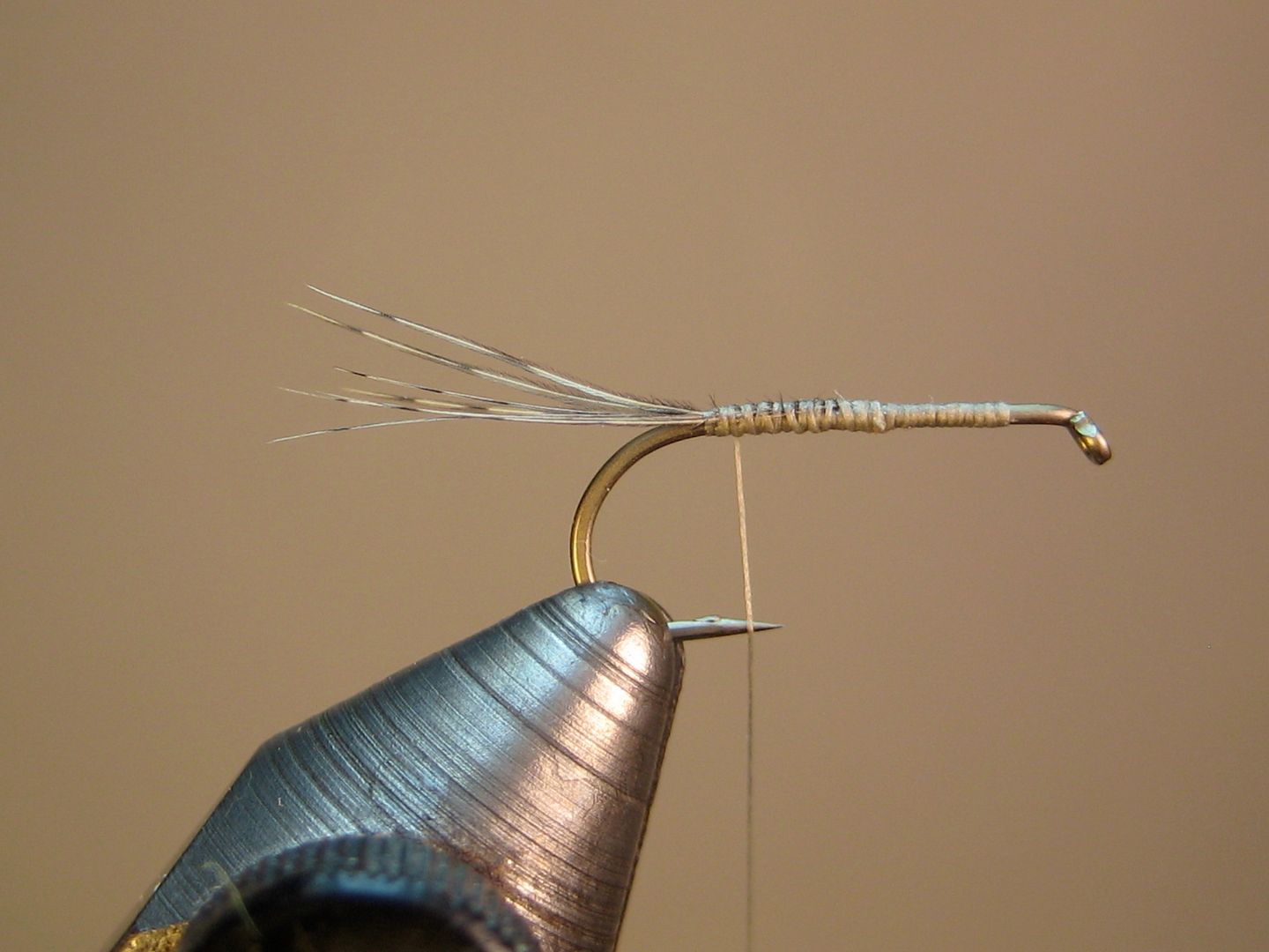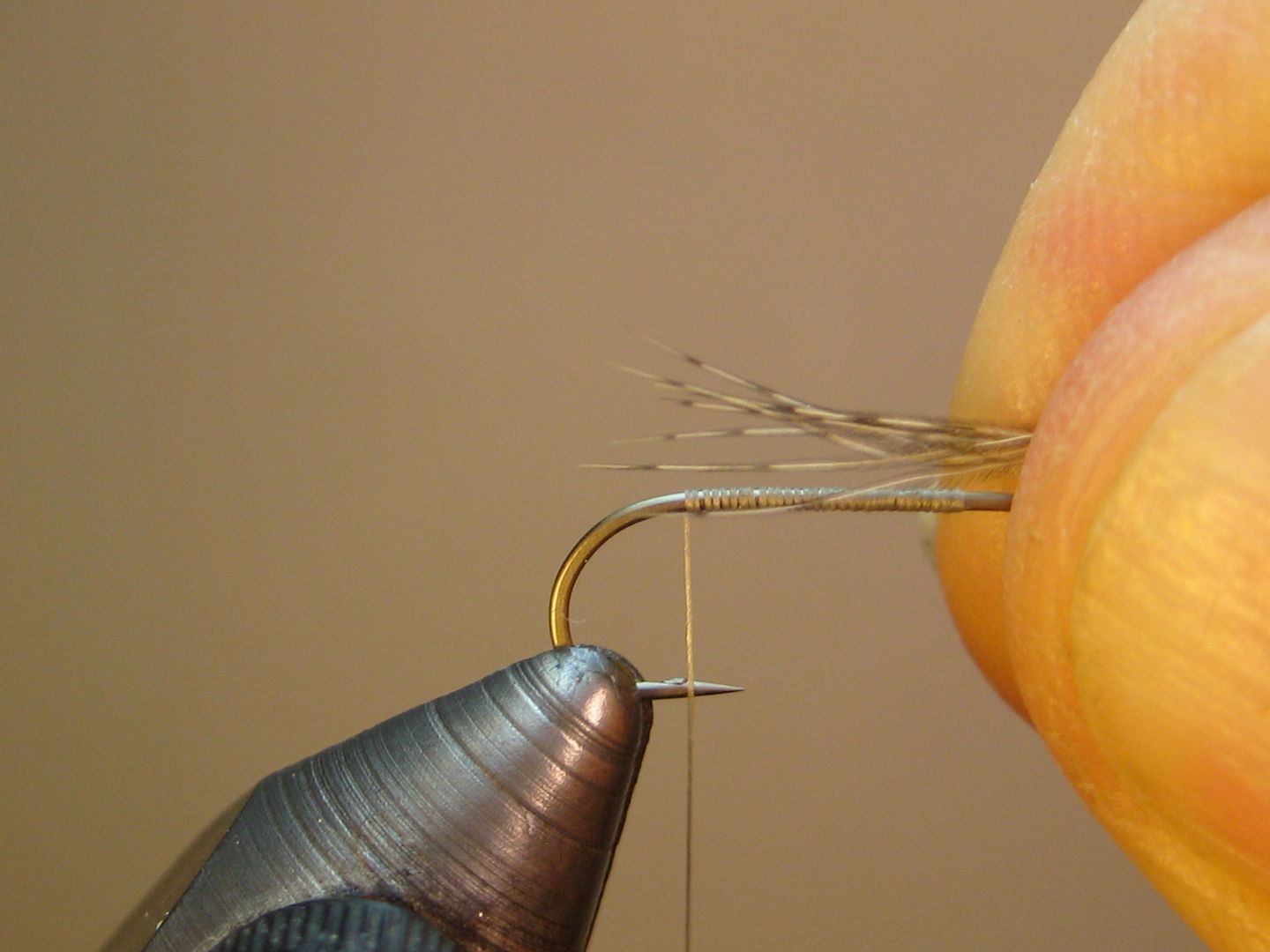 mash barb, start thread, wrap back to point above barb