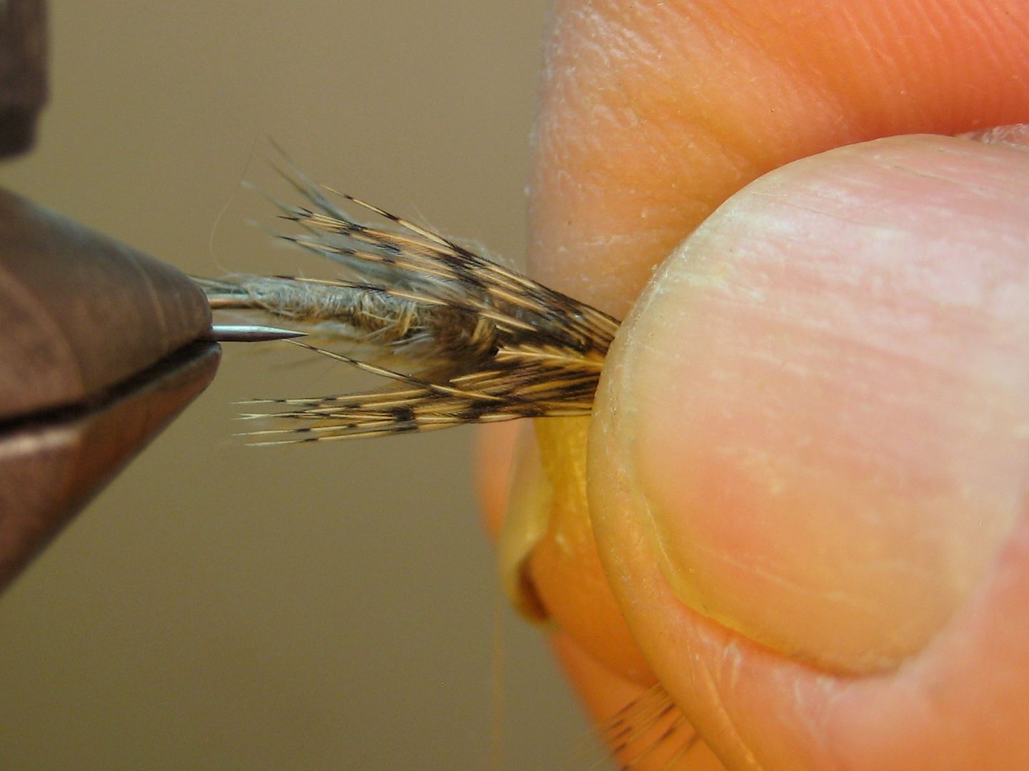 strip some partridge fibers, measure (shank length), and tie in