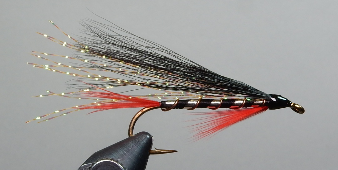 Wing - Orange/peach krystal flash under black squirrel tail. Krystal flash extends past squirrel tail