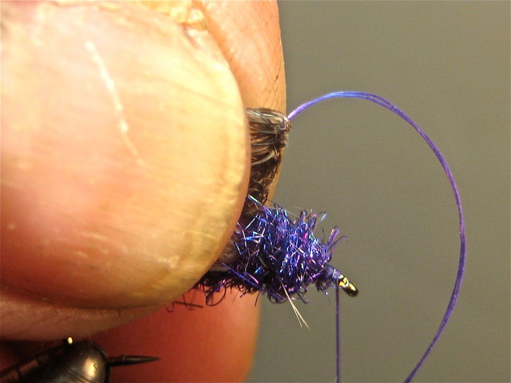 mash barb, start thread; tie in yarn and wrap to bend; trim (gap width)