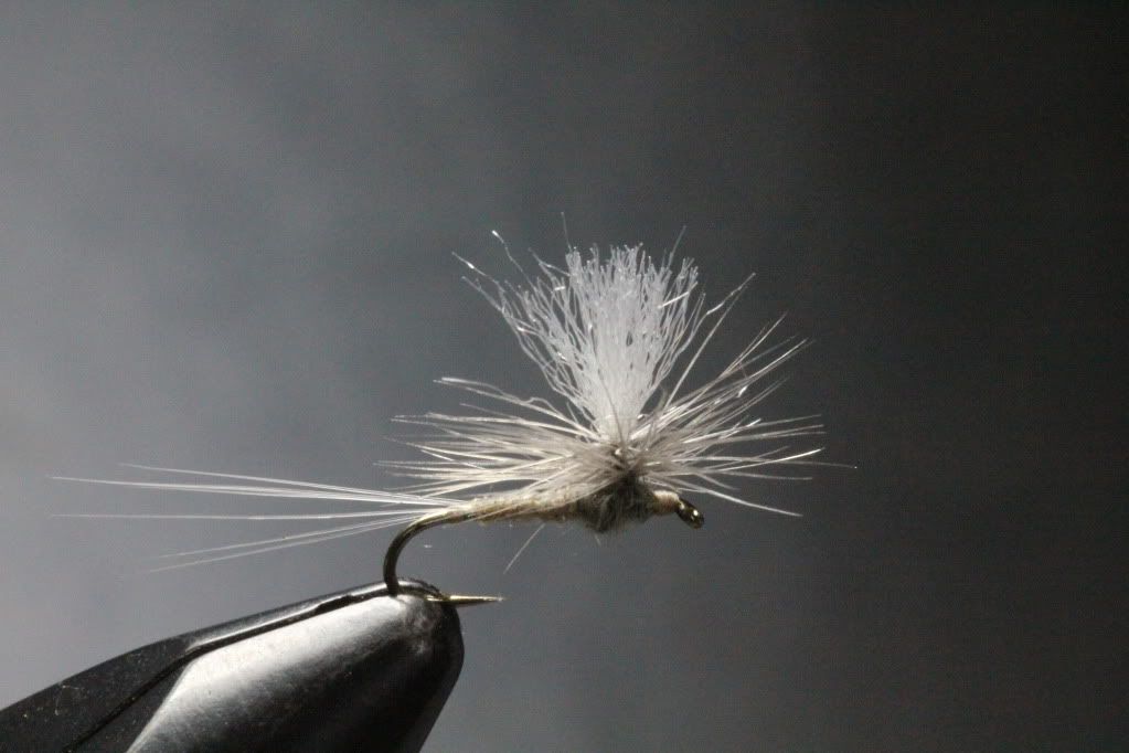 The duns get smaller as the season progresses and they tend to be darker in the spring and fall. At least where I fish, the underside of the duns is light colored, even when they appear dark from above. I don’t really think the two-tone body in the photo is necessary. All cream works fine.