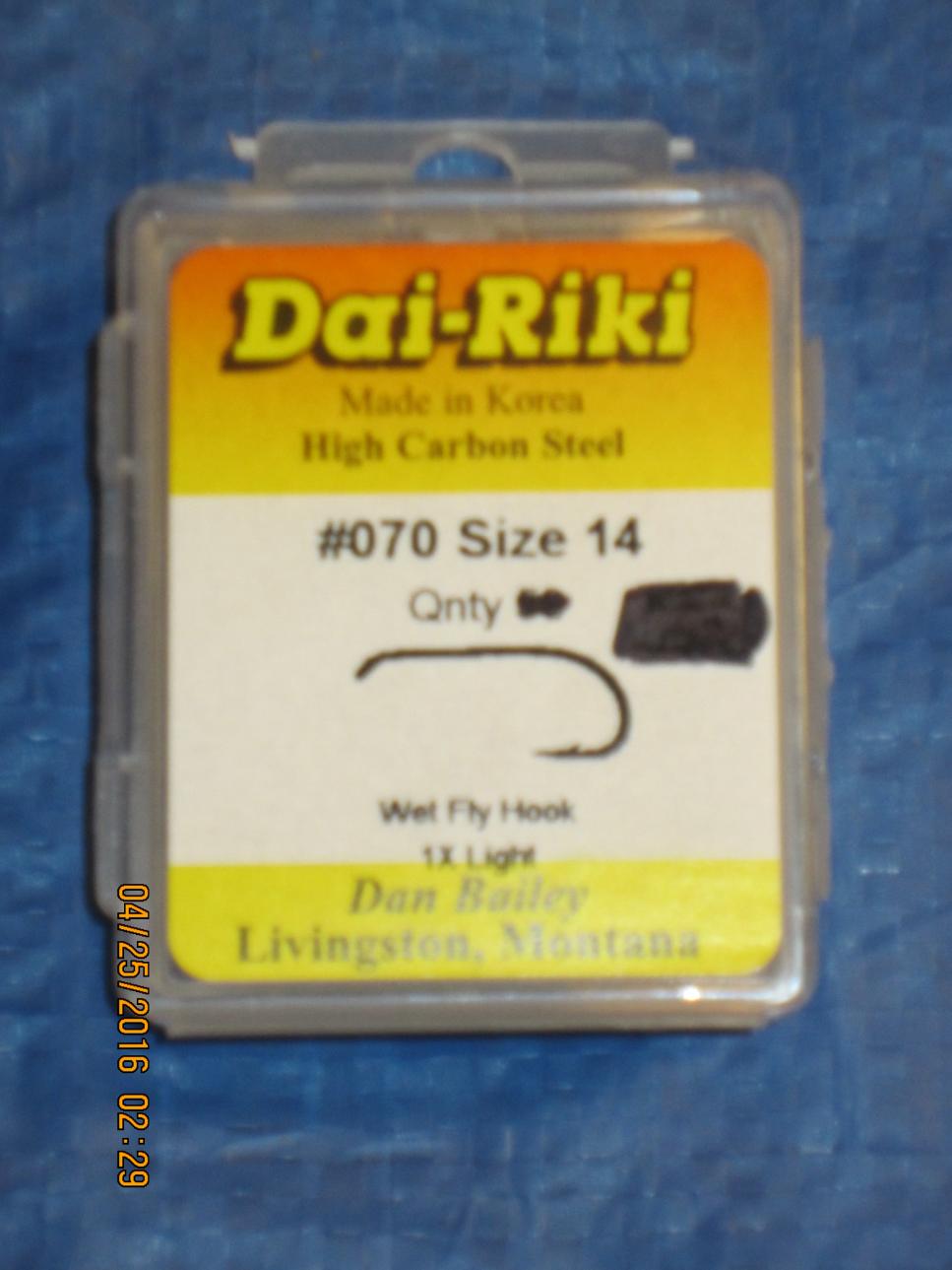 I have purchased a quantity of fly tying hooks. More than I can ever use. I have them for sale on Ebay, but for sharing here I will offer them at a reduced price and I’ll pay the shipping. Paypal accepted: email xbonz@bresnan.net.Buy hooks for fly tying. Dai-Riki #070 &125 size 14 ( see pics) 7.5 cents each any quantity 1-100, choose your own quantity !