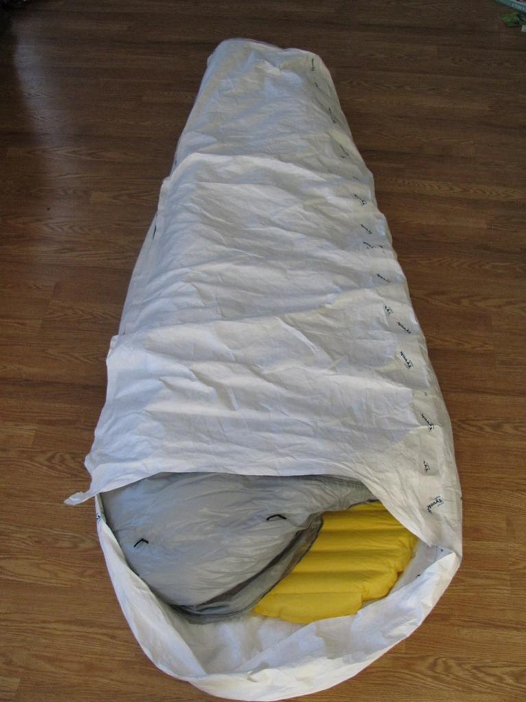 tyvek 1443R bivy sack, seams with Tyvek tape (made using plans from BackpackingLight.com, PM me for a link if interested, not finished; 1443R is what the Tyvek suits are made from)
