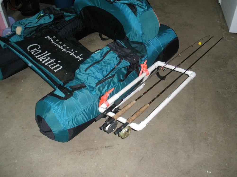 Well I did it finally I made my first Rod Rack for my float tube aand I wanted to share with every one. It hold 3 rods and looks like it will work just fine, I will try to put it to the test tommarrow or Sunday. Here are some pictures below.