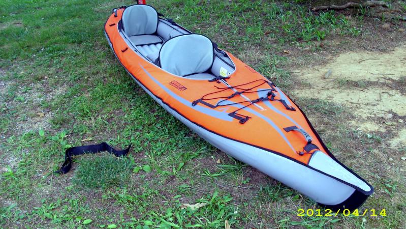 It has aluminum bow and stern inserts that make it cut and glide through the water like nothing I had ever paddled before.The really neat part doesn’t show in the picture. I have an aluminum ‘backbone’ for it that lays along the length of the boat under the floor pad. It makes it track perfect, and go as fast as any hard shell. They also have a high pressure drop-stitch floor for it that you even stand up on, but I have found no need for it. The boat also has a 1 seat, and 2 seat spray deck, and you can use a spray skirt with it. That comes in handy in the winter.
