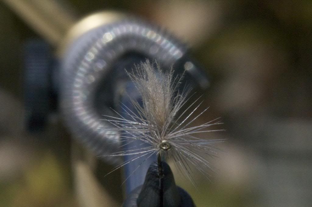 Part of it was the tinkering around thing, but the larger part of it was coming up with a better imitation for a particular hatch, with more “leggy” stuff out front, kind of like what some do with soft hackle, while maintaining the advantages of the parachute, but minimizing the wing and maximizing some clutter in the thorax area.