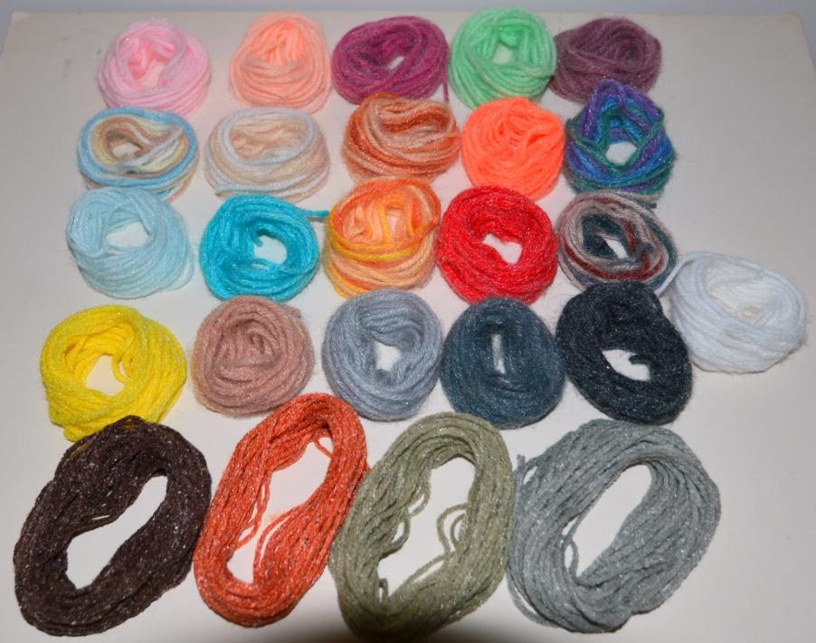 I have dug around and come up with the 4 custom colors that Gary had made up and 20 or so other colors of commercially produced yarns also. These are all yarns made of a mixture of clear antron and a colored fiber in 50/50 or 60/40% mix. I have been putting these together in sets with 10 yard pieces of the 4 custom colors and 5 yard pieces of the 20 other colors. I am doing this for $15.00 postage paid and I can now do paypal to help makes things simple. I have been putting other things in the package also as I go through my main storage closet of tying materials.