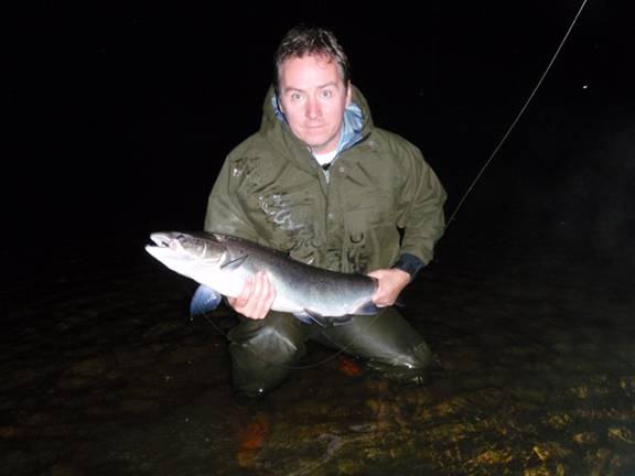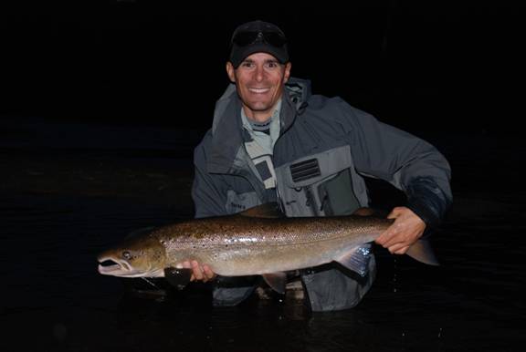 Mario holding on to a nice salmon which took a forest green Muddler