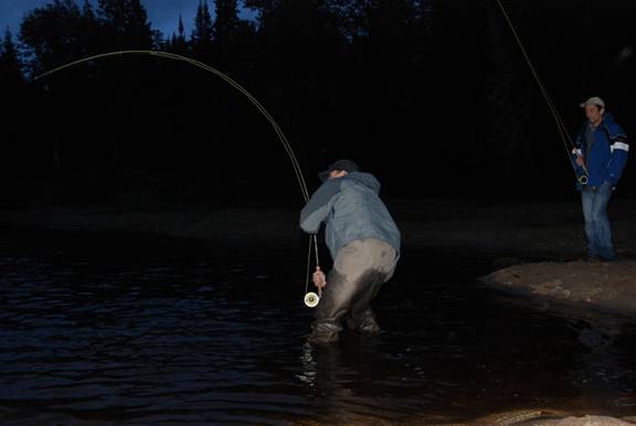 As we start out so early in the day, a mid day nap is in order, followed by an early supper. It is important to eat well at the end of the day because the evening fishing session will go right up until dark! In Quebec, Provincial regulations state the one can fish from 1 hour before dawn right up until 1 hour after sunset. When water conditions are low and clear, this last 45 minutes of fishing is often the very best opportunity to connect!