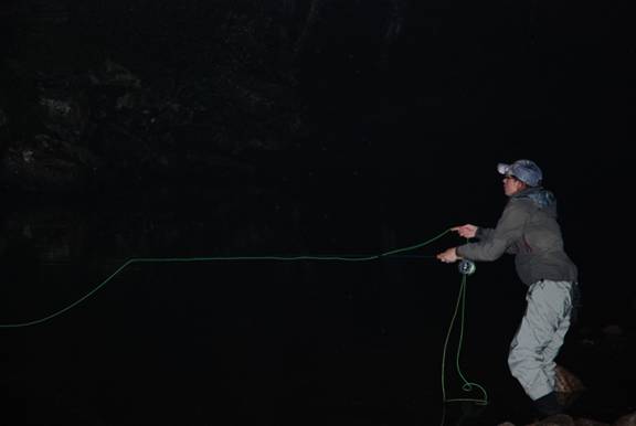 The last light of the day is often a fine time to hook-up on my home waters. It is worth it to wait those final moments and fish right up ‘til dark. You may have to brave a few mosquitoes and nosee’ums though. Also, remember to bring a working flashlight. The trail back to the pickup can be a bit treacherous in the dark!!!