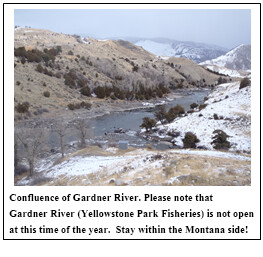 As you visit Yellowstone Park from North Entrance for wildlife watching or snowmobiling, don’t forget to bring your fishing gears and stop by where Gardner River merges into Yellowstone River in the town of Gardiner. Due to “Boiling River”, Gardner also spills warmer water into Yellowstone River. Midges hatch and trout rise to take them at likely spots. Another good bet is below Gardiner municipal airport (2 miles north from town). This stretch is more like freestone type with more slicks and pockets, compared to around Livingston. Besides, weather/wind pattern in Gardiner is oftentimes different from Livingston. Winds tend to be less brutal. So if you can’t find many opportunities for dry-fly fishing around Livingston, hit south!!Satoshi Yamamoto - Livingston, MT