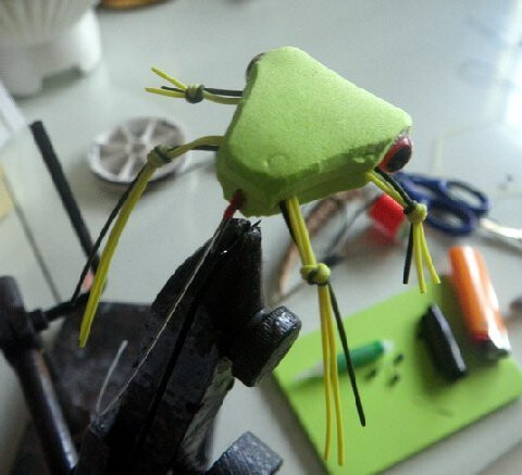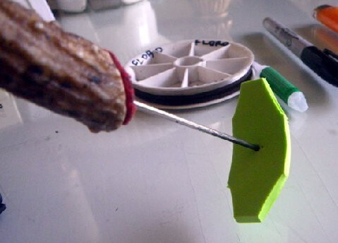 8th - round the edges and clean up around the hook a little bit…use your imagination…then get black sharpie and mottle it up according to taste…I also bar the legs to add zest…be sure to separate the legs so they can spread out where they were once factory glued…