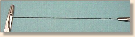 Holding the two Hemostat’s with the mono gut taunt between,