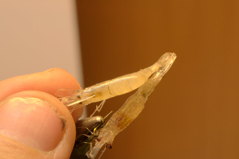 Jim, I don’t have that problem here in La. fishing for panfish. I typically fish this with a floating fly line and 5 feet of leader on the edge of grass lines. If I were going to fish shallow water where the fly would contact the bottom I would tie in the legs of the shrimp as a brush weedguard , the kind seen on heavy jigs.