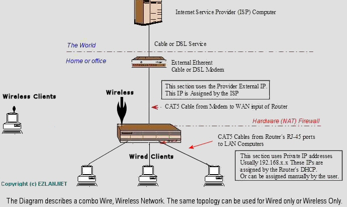 I connect high speed from home, so I simply installed a DSL router between the ISP and my computers.