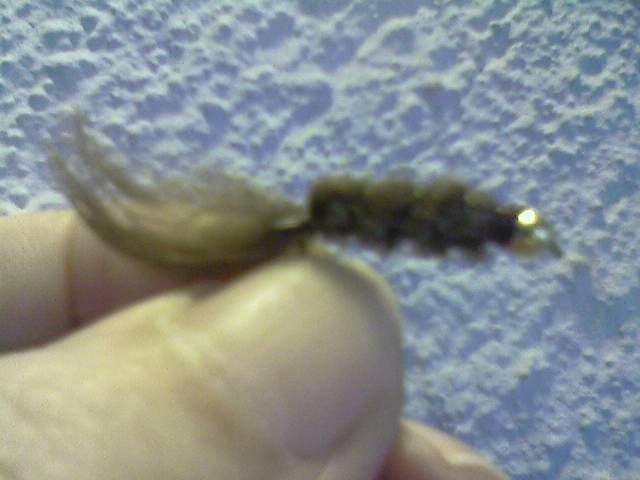 How did I miss this? I wanted to show off my Wooly bead head Buffler. From bison hair I picked up in Wyoming this past summer. Crappy picture, neat featherless fly. :eek: Maybe next time. Jimsnarocks