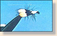 Body: Black or any dark hackle put on as for a ribbing hackle,