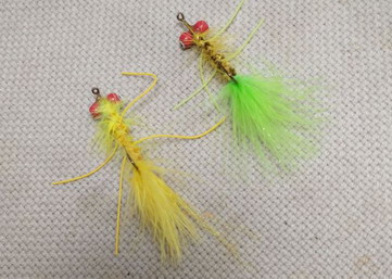 This pair will be fished with a spinning rod but the ones tied with medium sized eyes are fishable with a six weight rod. I try to keep the loop open to avoid hitting the rod tip which limits their effective distance but that doesn’t matter on most of the shallow rivers I fish for smallmouth.