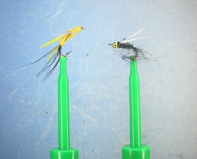 Size 14 hook, bead head, alpaca roving body and tail, biot wings also have tied it in white and pink after catching fish on the black one
