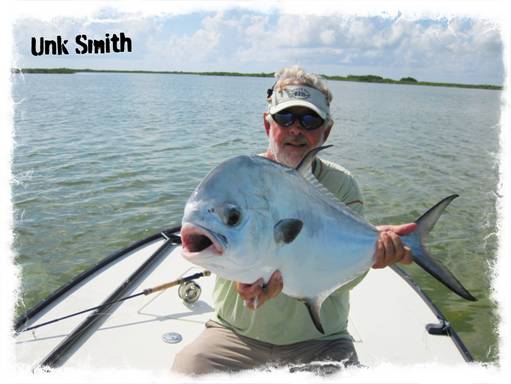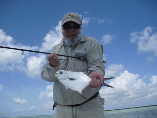 The PM we spent out in pretty deep water with one pass near an island. The wind was up and the guide really worked hard. Unk volunteered to fish in the rough water as my knee did not do well with the rocking. He picked a nice sized bone off a flat near the island. We each caught small fish out of mud clouds thinking big ones had been seen in them. Our last run out in the deep water and full wind had Unk up when the big permits showed up. He got several good shots without making them bolt and the fish played permit almost perfectly again. A couple did follow the fly but no hook ups. Home we went leaving happy fish still on the flats.