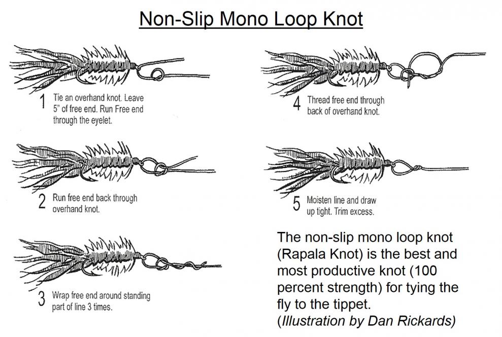 To give you another thing that I did was to use the Non-Slip-Loop knot for tying on all the flies (including the dry fly). See below on how to tie the Non-Slip-Loop knot.