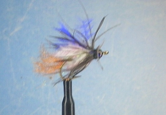 size 10 hook, orange antron, 2 colors chenille, flash, dubbing, ostrich id dubbing loop or tied on in circle, soft hackle