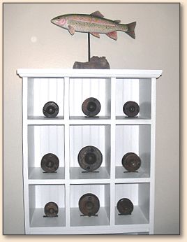 antique wooden fly reels from England, duck decoys.