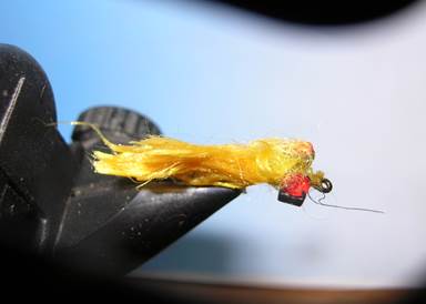 This happened to be the first fly I tried in the second set of flies. I cast it out and let it drop a few feet. When I started to retrieve the line it felt funny and I set the hook. I had a nice crappie on the line. After some experimenting it appeared that the fish seemed to hit on the drop. I tried it a few more times and got a fish each time. Curiosity struck and I tried the other fly, with no red eyes, and got nothing; so it was back to the red eyes.