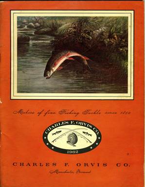 My oldest catalogue is from Charles F. Orvis Co which I received in 1962. It still had the traditional jumping brook trout painting on the front cover and there was a note inside asking “What happened to the Dropper Fly?” Apparently the image was originally commissioned by Charles F. Orvis, the founder of the Orvis Company. On the cover of this catalogue they used the original lithograph and the dropper fly, which had been evident in the previous copies, is missing. Ah, the mysteries that we find in fly fishing.