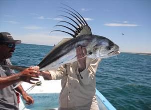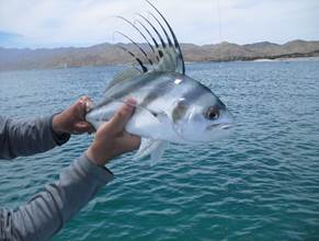 Roosterfish are native to the pacific from San Clemente, CA to Peru and the Galapagos Islands but rare north of Baha. We have tried for them in other places but this trip was just inside the Sea of Cortez north of Cabo and south of La Paz. The book says they go to five feet and up to 80 pounds. Attitude is not mentioned.