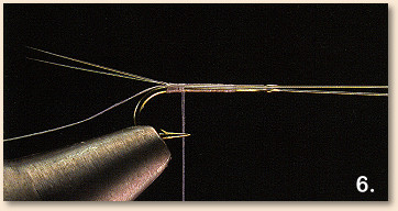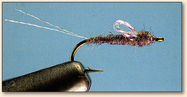 front edge of the tails. A thin strand of dubbing is required for the