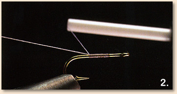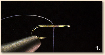 1 . Attach the thread at the 75 percent point on the hook, leaving a long tag end.
