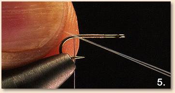 tube toward the hook bend, sliding a length of thread in between your