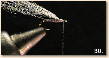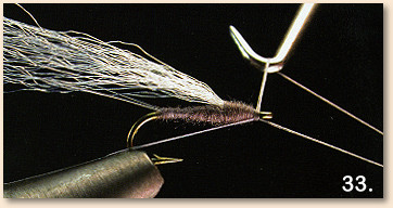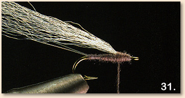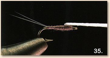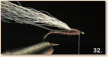 31 . Begin wrapping the dubbing from the back edge of the index