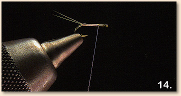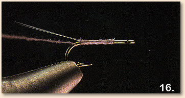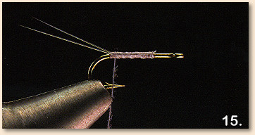 21 . Wrap the remaining dubbing back over the front half of the
